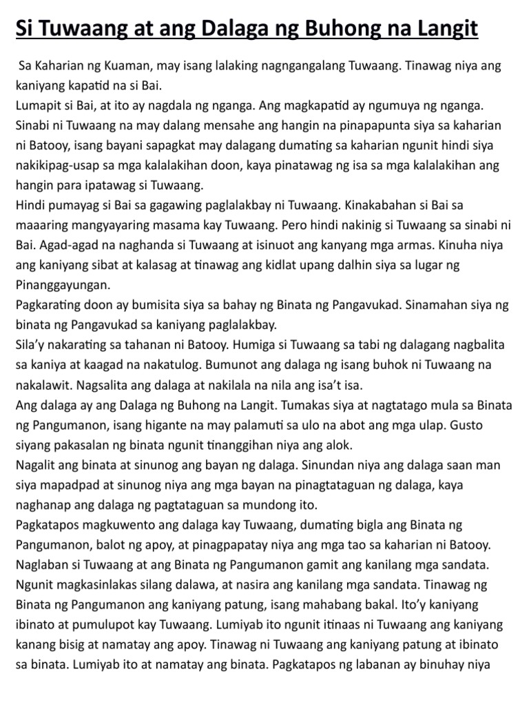 Si Tuwaang At Ang Dalaga Ng Buhong Na Langit Pdf
